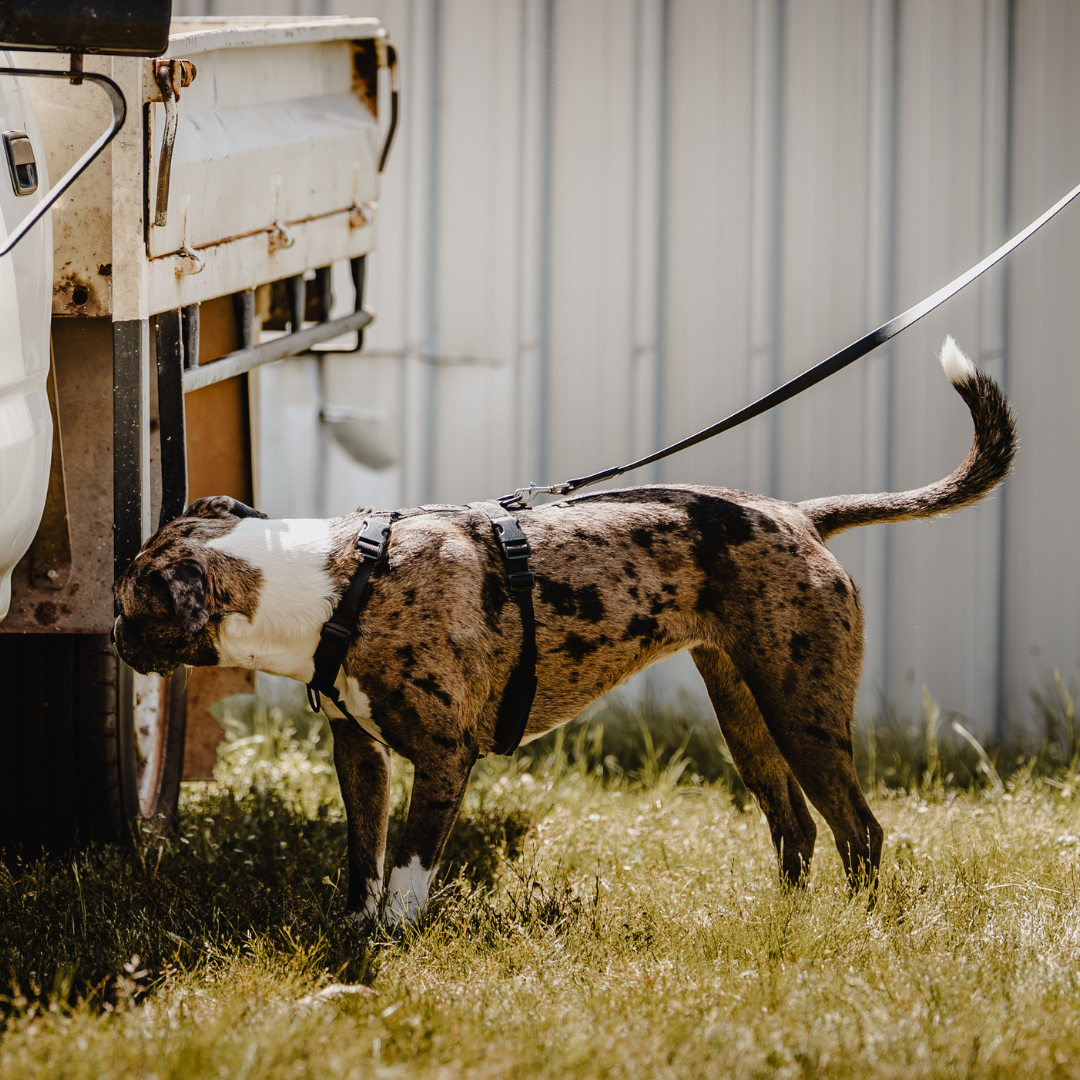 Below is a real-world comparison using the same active sport dog Misty, wearing two different harness designs.